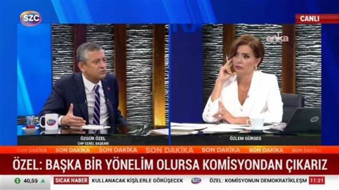 CHP Genel Başkanı Özgür Özel, SZC TV’de gazeteci Özlem Gürses’in sorularını yanıtladı. Özel, ''Meclis’te kurulacak süreç komisyonuna tutuklu bulunan arkadaşlarınızı kurtarmak için mi girdiniz'' sorusuna şu yanıtı verdi:
