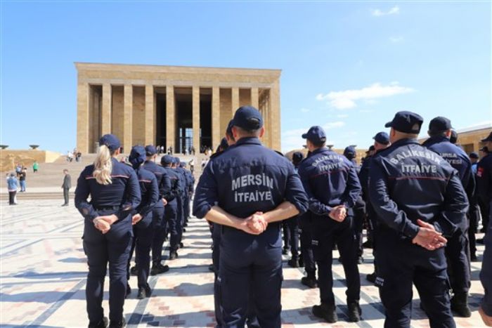 Mersin Büyükşehir Belediyesi İtfaiye Dairesi Başkanlığı’nın da yer aldığı heyette; Adana, Ankara, İstanbul, Balıkesir, Antalya, Bursa, Denizli, İzmir, Manisa ve Tekirdağ Büyükşehir Belediyeleri’nin itfaiye ekipleri de yer aldı. Aslanlı Yol’dan yürüyerek mozoleye ulaşan kahraman itfaiyeciler, İstiklal Marşı’nı coşkuyla okuyarak Ata’ya selam durdu.