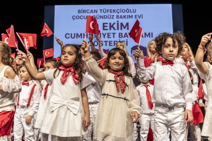 Mezitli Belediyesi Çocuk Gündüz Bakım Evleri, 29 Ekim Cumhuriyet Bayramı’nı unutulmaz bir etkinlikle kutladı. Mezitli Belediyesi Kültür Merkezi’nde gerçekleşen organizasyonda, Bircan Tüfekçioğlu, Enis Necip Tüyeni, Mustafa Baysan ve Lions kreşlerinden yüzlerce minik öğrenci sahne aldı. Atatürk’ün sevdiği şarkılar eşliğinde dans eden çocuklar, Cumhuriyetin 102. yılına yakışır bir performans sergiledi.