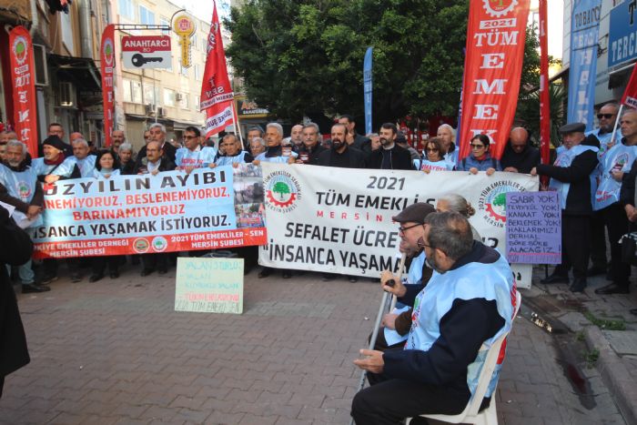MERSİN – Türkiye Emekliler Derneği Mersin Şubesi ile 2021 Tüm Emekliler Sendikası Mersin Şubesi, Şube Başkanı Hüseyin Kurt tarafından okunan basın açıklamasıyla iktidarın emekli politikalarına sert tepki gösterdi. Açıklamada, emeklilerin yoksulluğa mahkûm edildiği vurgulanarak, “İnsanca yaşam istiyoruz, haklarımızı alana kadar mücadeleden vazgeçmeyeceğiz” mesajı verildi.