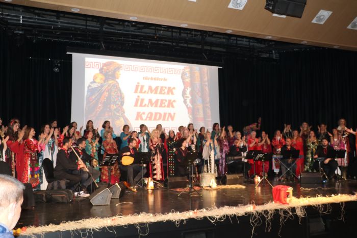 Sevda, ayrılık ve hasretin yanı sıra şiddete, eşitsizliğe ve acıya karşı kadınların sesi olan türküler; dans, ritim ve görsellerle sahneye taşındı. “İlmek İlmek Kadın” programı duygu dolu anlar yaşatırken, izleyicilerden uzun süre alkış aldı.