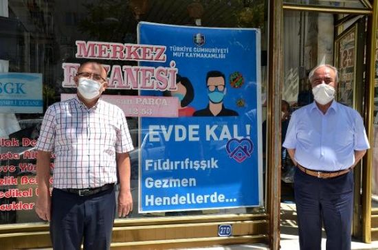 Mut Kaymakamlığı, koronovirüsle mücadele kapsamında, farkındalık yaratmak için yöresel şiveyle uyarı ifadelerinin yer aldığı afişler bastırdı.