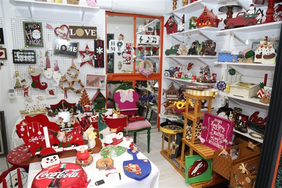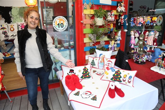 Mezitli Sanat Çarşısı'nda yeni yıl için özel hediyeler satılıyor.