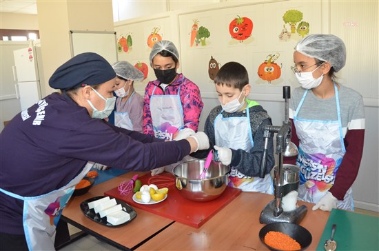 Annesiyle birlikte yemek yapmayı sevdiğini kaydeden bir diğer öğrenci Tuana İlayda Akyaz da “Burada arkadaşlarımla birlikte yemek yapıyorum. Öğretmenlerim bana çok güzel şeyler anlatıyor. Yemeğe merakım var, çok güzel de yemek yaparım” diye konuştu.