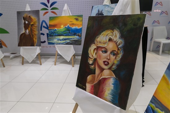 Mersin Büyükşehir Belediyesi Kadın ve Aile Hizmetleri Dairesi’nin Palm City AVM’de gerçekleştirdiği Üretici Kadın Buluşmaları’na Engelliler ve Sağlık Hizmetleri Dairesi’nin Yaşlı Destek Birimi’nden düzenli destek alan 76 yaşındaki Müzeyyen Çetinkaya da katılarak, yaptığı resimleri sergiledi.