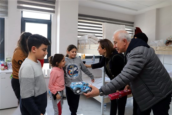 Akdeniz Belediye Başkanı Mustafa Gültak, gün içerisinde; beraberinde Mersin Milletvekili Zeynep Gül Yılmaz ile birlikte, erkek öğrenci yurdu olarak da hizmet vermek üzere Gençlik ve Spor Bakanlığı’na tahsis edilen Yılmaz Güney Sosyal Tesisleri ile Karacailyas Mahalle Kültür Evi’nde ağırlanan deprem mağduru vatandaşları da ziyaret etti. özellikle küçük çocuklarla yakından ilgilenen Milletvekili Yılmaz ve Başkan Gültak, onlara sohbet edip hediyeler verdi.