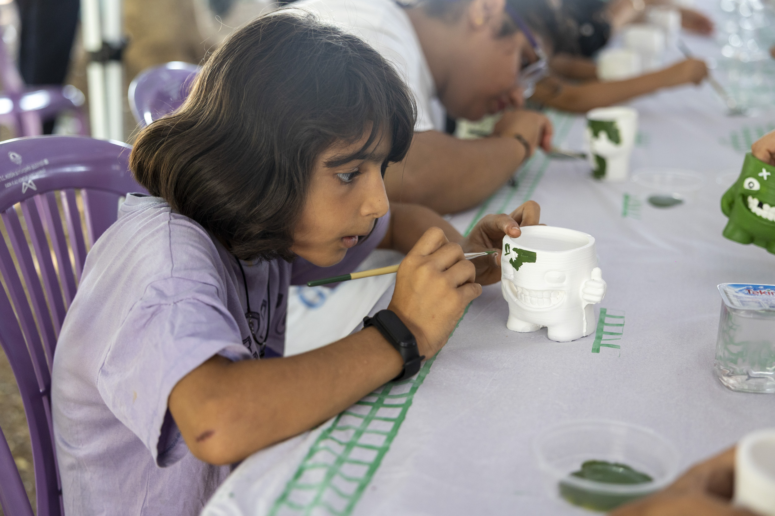 Çocuklar da duygularını paylaştı. Nesli Nisa Tor, “Kalemliğimizi yeşile boyadık. Çok güzel bir gündü” derken, Ezgi Güneş “Kahvaltı yaptım, boyama yaptım, çok eğlendim” dedi.
