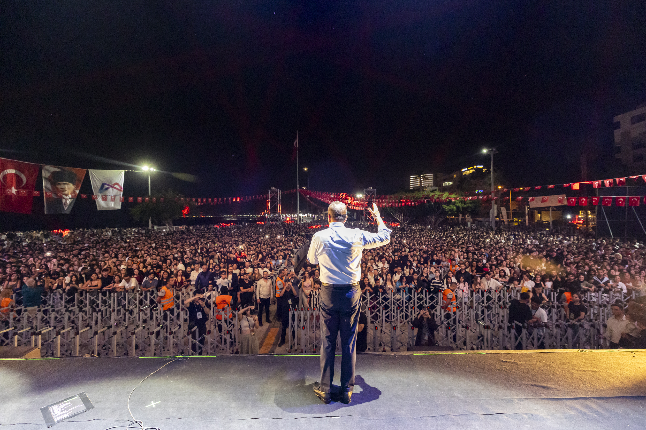 Konser öncesi sahneye çıkan Mersin Büyükşehir Belediye Başkanı ve TBB Başkan Vekili Vahap Seçer, gençlere kısa ama güçlü mesajlar verdi:
