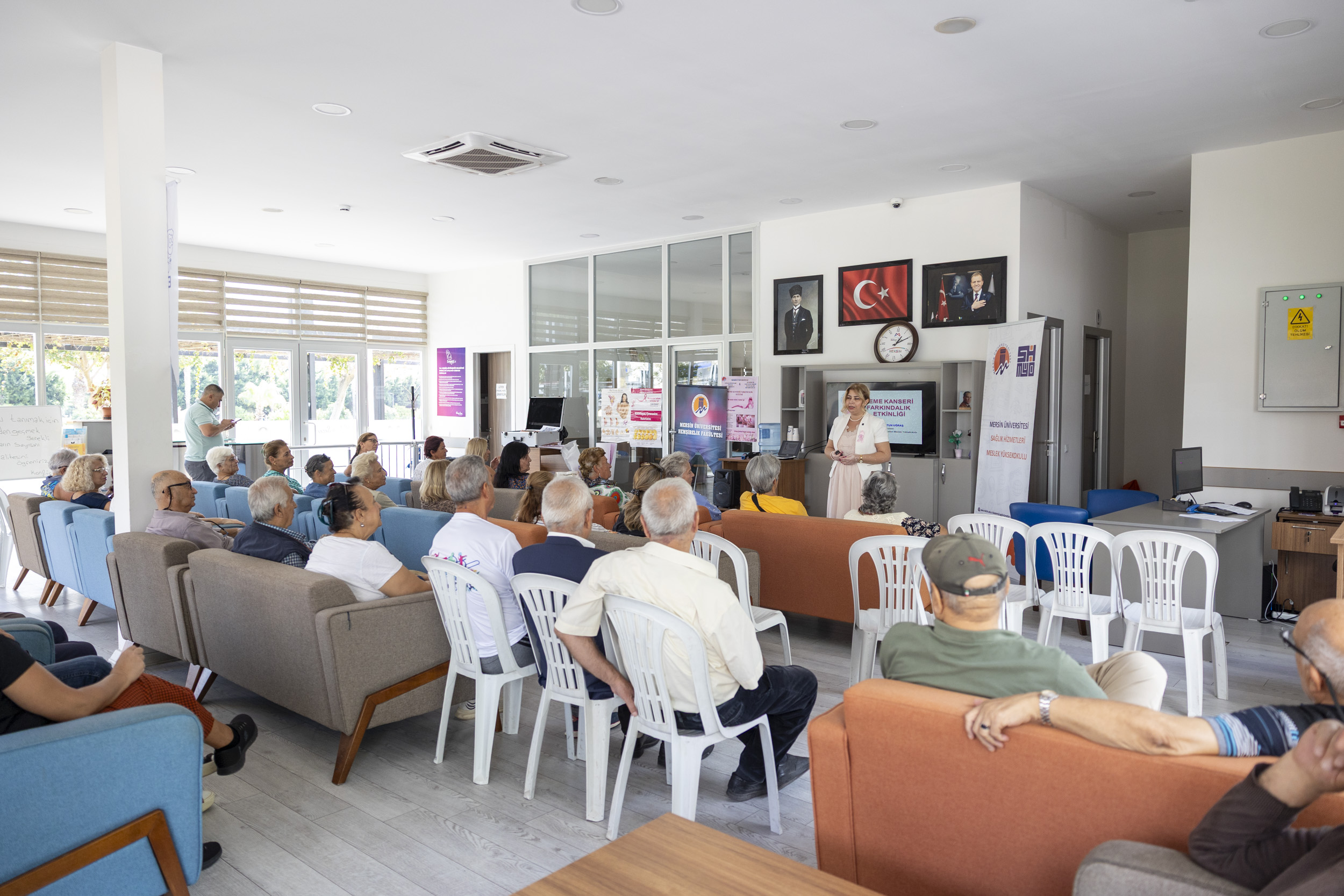 Mersin Üniversitesi Hemşirelik Fakültesi Öğretim Üyesi Prof. Dr. Gülay Altun Uğraş’ın verdiği eğitimde, meme kanserinin risk faktörleri, evde yapılabilecek kontroller ve düzenli muayenenin hayati rolü ele alındı. Katılımcılar, gerçekçi meme maketleri üzerinde kendi kendine muayene tekniklerini birebir deneyimleyerek öğrendi.