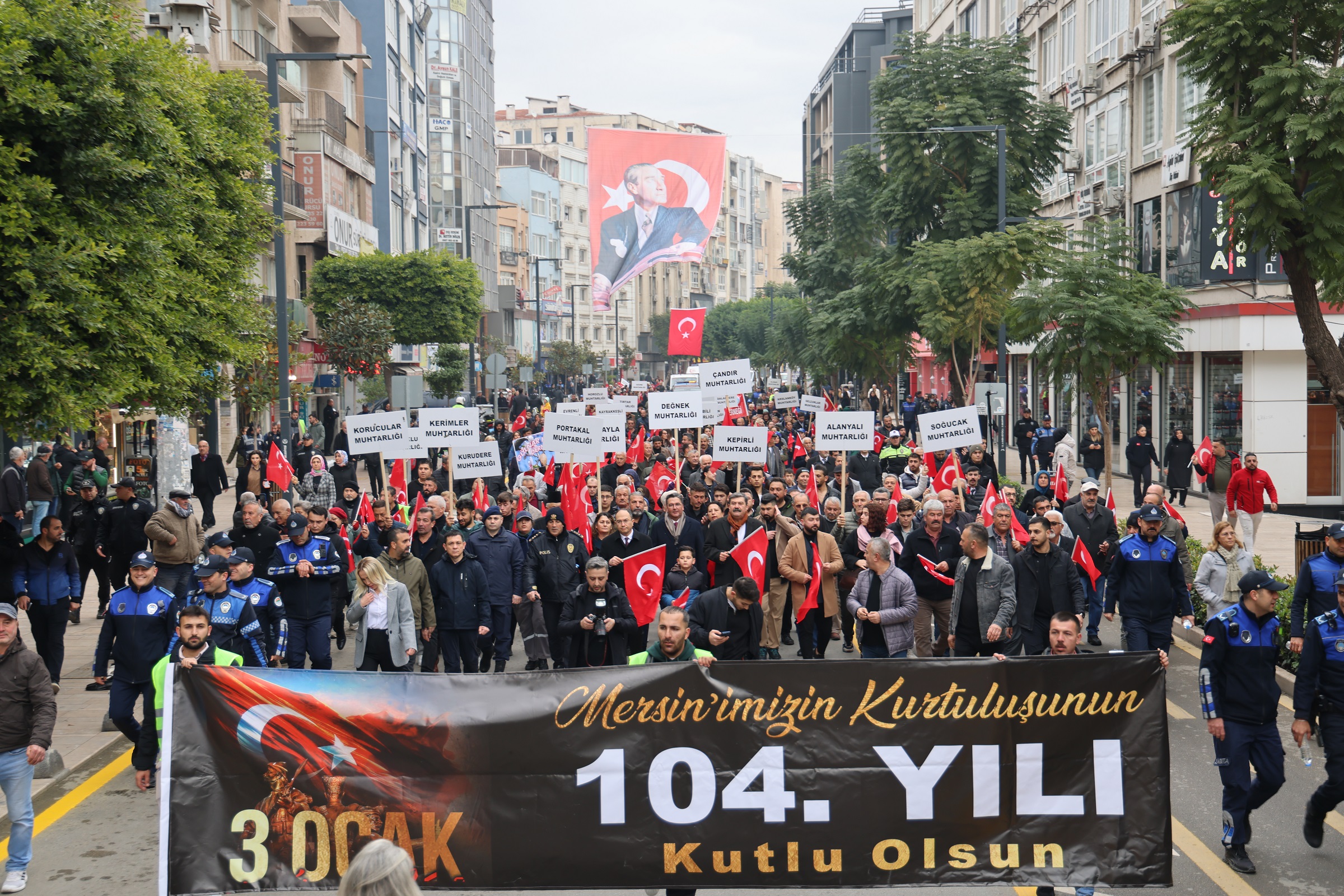 Mersin’in düşman işgalinden kurtuluşunun 104’üncü yılı, Toroslar Belediyesi’nin düzenlediği 3 Ocak Kuvayi Milliye Yürüyüşü ile büyük bir coşkuya sahne oldu. Toroslar Belediye Başkanı Abdurrahman Yıldız ve Toroslar Kaymakamı Mehmet Soğukpınar öncülüğünde gerçekleşen yürüyüşte, 7’den 70’e binlerce vatandaş Kuvayi Milliye ruhunu yeniden yaşattı.