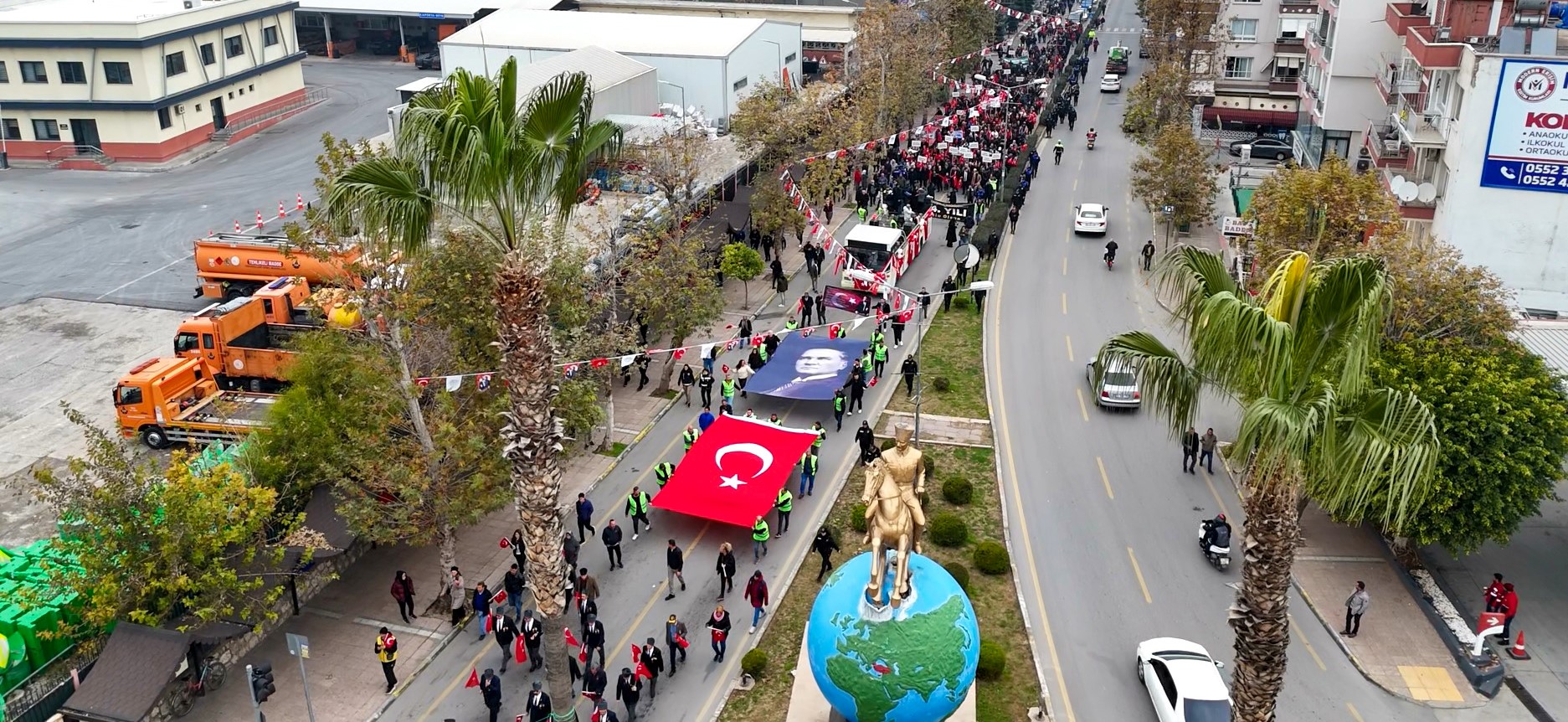 Sabahın erken saatlerinde Toroslar Kuvayi Milliye Anıtı önünde toplanan kalabalık, saygı duruşu ve İstiklal Marşı’nın ardından dev Türk bayrağı ve Atatürk portresi eşliğinde yürüyüşe başladı. Kuvayi Milliye Caddesi’nden Cumhuriyet Meydanı’na uzanan kortej, Mersin sokaklarını tarihi bir direniş atmosferine dönüştürdü.