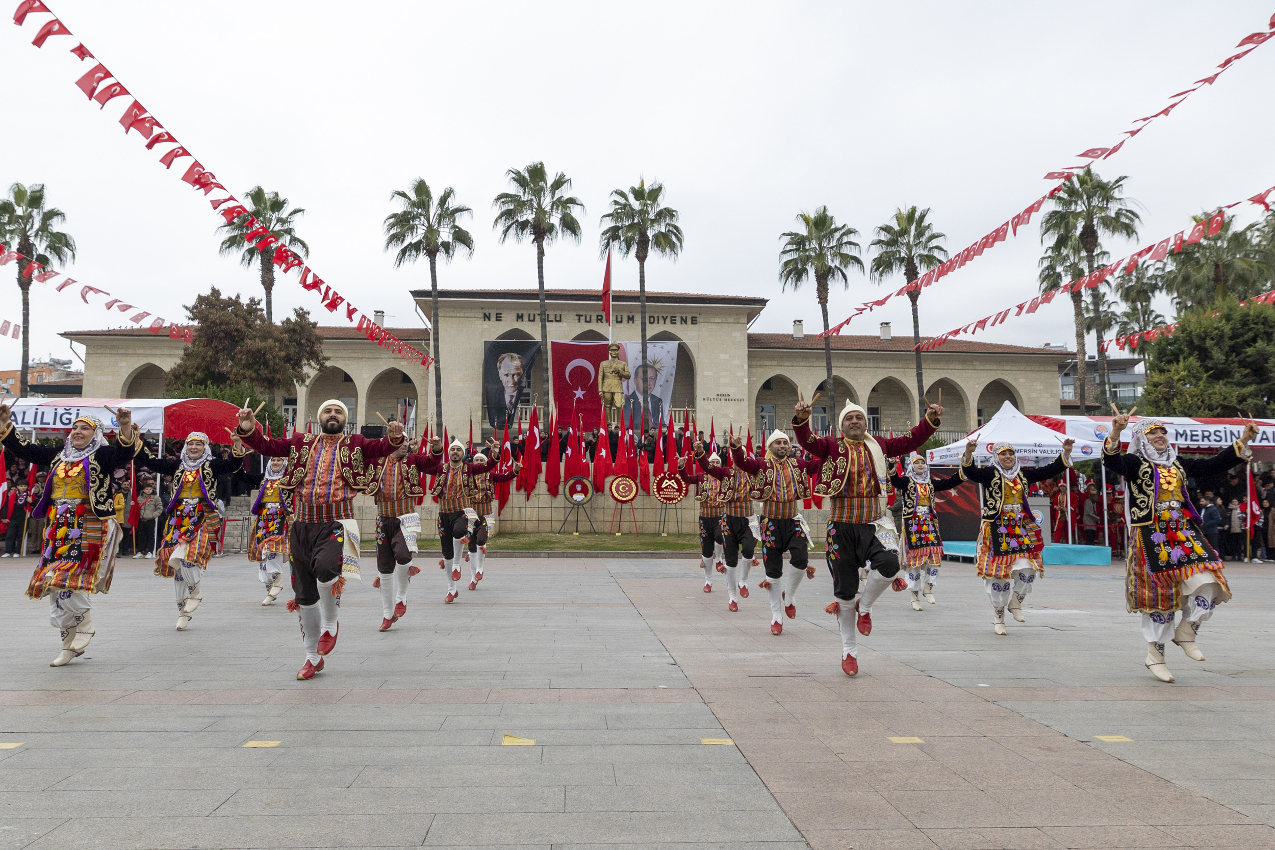 Törenler; halk dansları, mehteran konseri, Jandarma Merasim Bölüğü’nün gösterileri, helikopter üzüm salkımı manevrası ve F-16 uçaklarının selamlama uçuşları ile sona erdi. Programın ardından Başkan Seçer ve protokol üyeleri, Türkiye Harp Malulü Gaziler, Şehit Dul ve Yetimleri Derneği Mersin Şubesi’ni ziyaret etti.