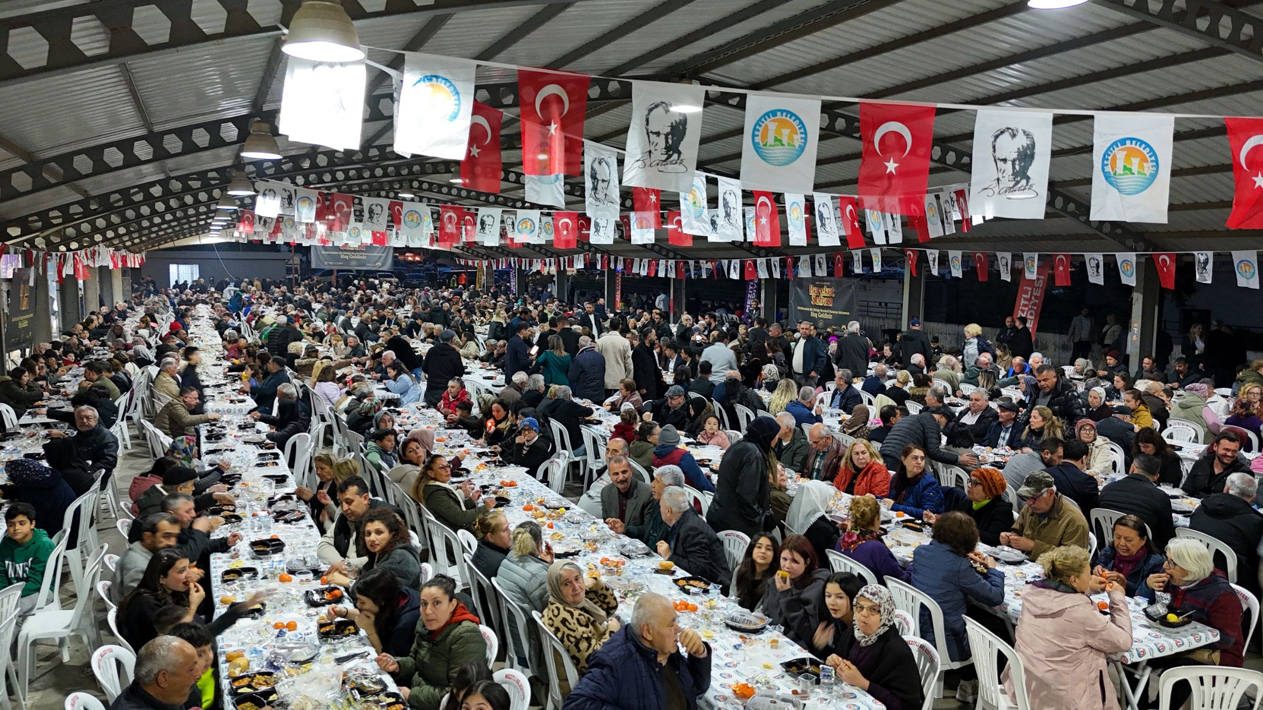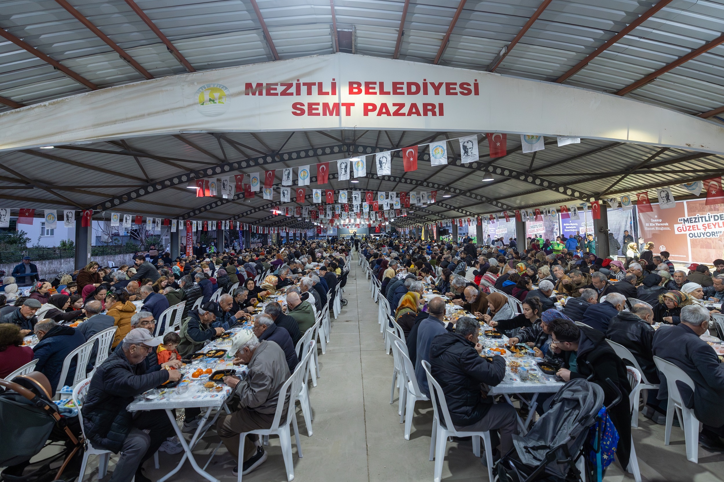 Mezitli Belediyesi tarafından organize edilen iftar programı, Tece Seymenli Mahallesi Kapalı Pazar Yeri’nde yoğun bir katılımla gerçekleşti. Etkinliğin en dikkat çeken detayı ise ikram edilen yemeklerin Mezitli’nin üretici kadınları tarafından hazırlanması oldu. Hem yerel üretimi destekleyen hem de yöresel lezzetleri vatandaşla buluşturan programda, yüzlerce kişi aynı anda orucunu açtı.