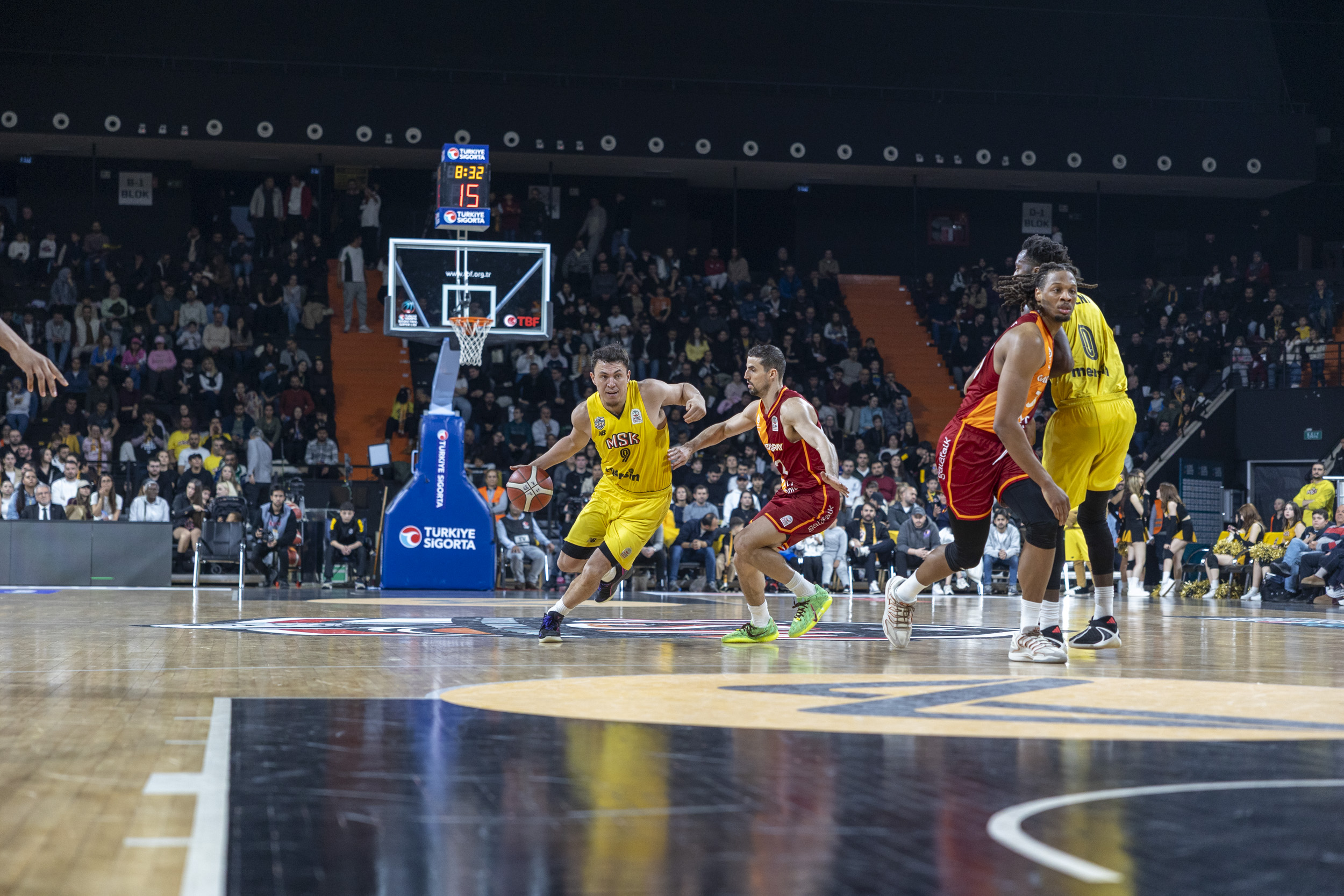 Maça taraftarının müthiş desteğiyle başlayan MSK, hızlı hücumlar ve yüksek dış şut yüzdesiyle Galatasaray savunmasını felç etti. İlk periyodu 31-16 gibi ezici bir skorla önde kapatan Mersin ekibi, rakibine nefes aldırmayacağının sinyallerini ilk 10 dakikada verdi.