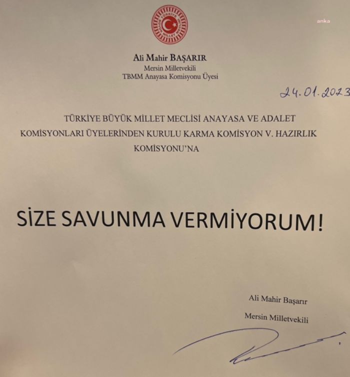ALİ MAHİR BAŞARIR`DAN DOKUNULMAZLIK KOMİSYONUNA TEK CÜMLELİK YANIT: “SİZE SAVUNMA VERMİYORUM"