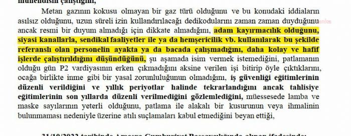 AMASRA MADEN FACİASINA İLİŞKİN FEZLEKE… EMNİYET MÜHENDİSİ: “SİYASİ KANALLARLA REFERANSLI OLAN PERSONEL AYAKTA YA DA BACADA ÇALIŞMADI… DAHA KOLAY VE HAFİF İŞLERDE ÇALIŞTIRILDIĞINI DÜŞÜNÜYORUM”