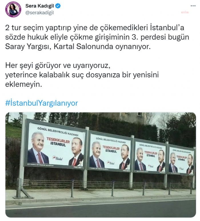 Türkiye İşçi Partisi (TİP) Sözcüsü Sera Kadıgil, İstanbul Büyükşehir Belediye (İBB) Başkanı Ekrem İmamoğlu`nun siyasi yasak ve hapsinin istendiği davada karar b...