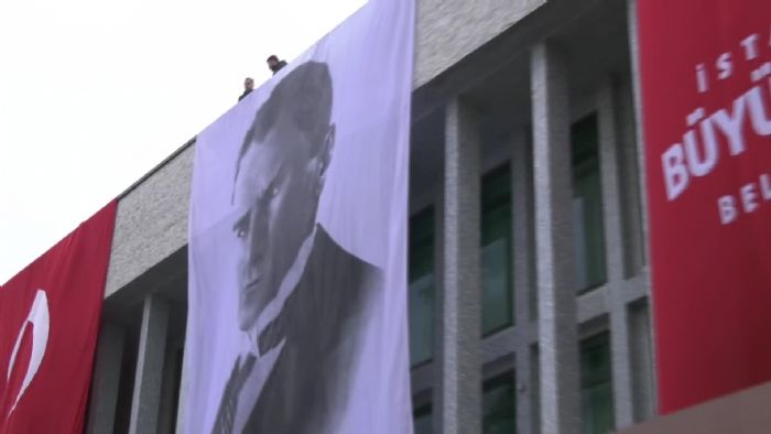 İMAMOĞLU`NUN ÇAĞRISI SONRASI, İBB SARAÇHANE BAŞKANLIK BİNASI ÖNÜNDEKİ HAZIRLIKLAR TAMAMLANDI