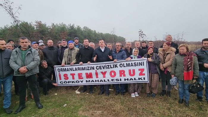 Edirne`nin Uzunköprü ilçesi Çöpköy Mahallesi sakinleri, 5 bin dekarlık ormanlık alanın özel bir şirkete ceviz ekimi için verilmesini protesto etti. CHP Edirne M...