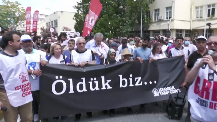 İstanbul`da sağlık emekçileri, Konya Şehir Hastanesi`nde görevi başında dün katledilen kardiyoloji uzmanı Ekrem Karakaya için Çapa Tıp Fakültesi`nin önünden İl ...