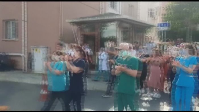 İSTANBUL`DA SAĞLIKÇILAR, KONYA`DA ÖLDÜRÜLEN DOKTOR EKREM KARAKAYA İÇİN HASTANE ÖNLERİNDE SAYGI DURUŞUNDA BULUNDU VE OTURMA EYLEMİ YAPTI