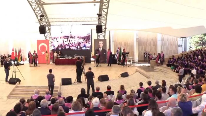 HACETTEPE TIP FAKÜLTESİ MEZUNİYET TÖRENİNDE GENÇ DOKTORUN KONUŞMASININ KESİLMESİ ALKIŞLARLA PROTESTO EDİLDİ