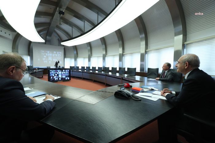 Demokrat Parti ev sahipliğinde gerçekleşen üçüncü “liderler buluşmasından” ilk fotoğraf kareleri servis edildi. Liderlerin buluştuğu masanın yanındaki duvarda M...