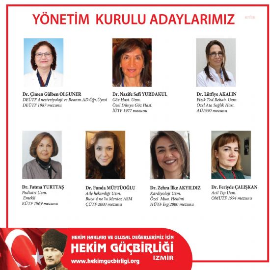 İzmir Tabip Odası`nın bu ay yapılacak genel kurulunda yönetime Prof. Dr. Çimen Gülben Olguner`in başkanlığında 7 kadın hekimden oluşan ‘Hekim Güçbirliği Grubu` ...