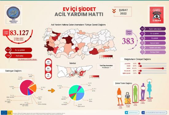 Türkiye Kadın Dernekleri Federasyonu`nun (TKDF) Aile İçi Şiddet Acil Yardım Hattı-Şubat 2022 Raporu`na göre; aile içi şiddet, yüzde 59,8 oranında eşler tarafınd...