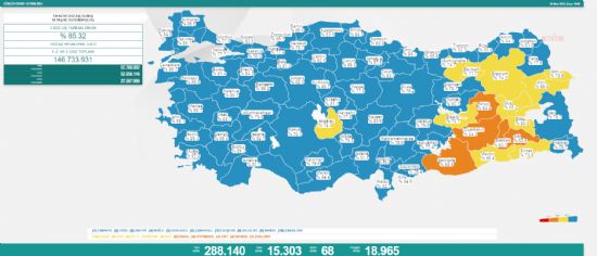 Sağlık Bakanlığı`nın 25 Mart`a ilişkin koronavirüs verilerine göre; son 24 saat içerisinde yapılan 288 bin 140 testten 15 bin 303`ü pozitif çıktı. Virüs nedeniy...