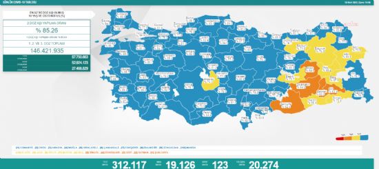 Sağlık Bakanlığı`nın 18 Mart`a ilişkin koronavirüs verilerine göre; son 24 saat içerisinde yapılan 312 bin 117 testten 19 bin 126`sı pozitif çıktı. Virüs nedeni...