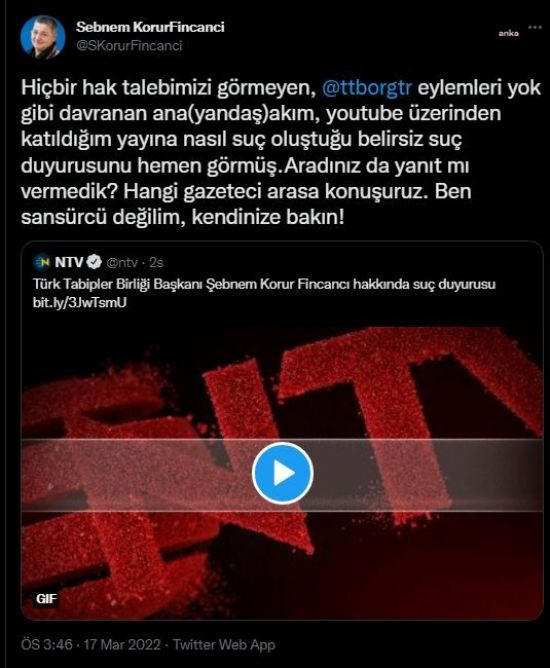 TTB BAŞKANI FİNCANCI: YANDAŞ AKIM, NASIL SUÇ OLUŞTUĞU BELİRSİZ SUÇ DUYURUSUNU HEMEN GÖRMÜŞ