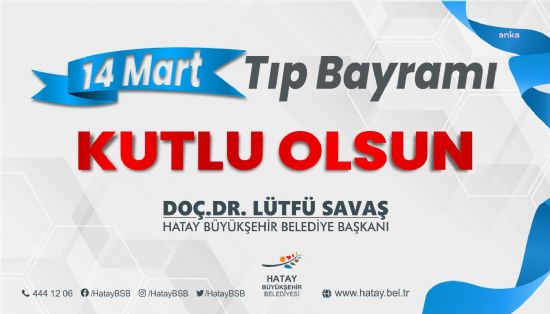 Hatay Büyükşehir Belediye Başkanı Lütfü Savaş, 14 Mart Tıp Bayramı dolayısıyla bir mesaj yayımladı....