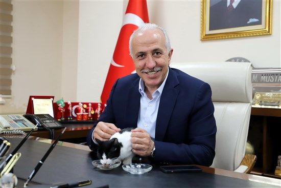 Akdeniz Belediye Başkanı M. Mustafa Gültak, ‘17 Şubat Dünya Kediler Günü’ dolayısıyla, bir gözü engelli, diğer gözü de çok az görebilen “Zilli” adlı kediyi maka...
