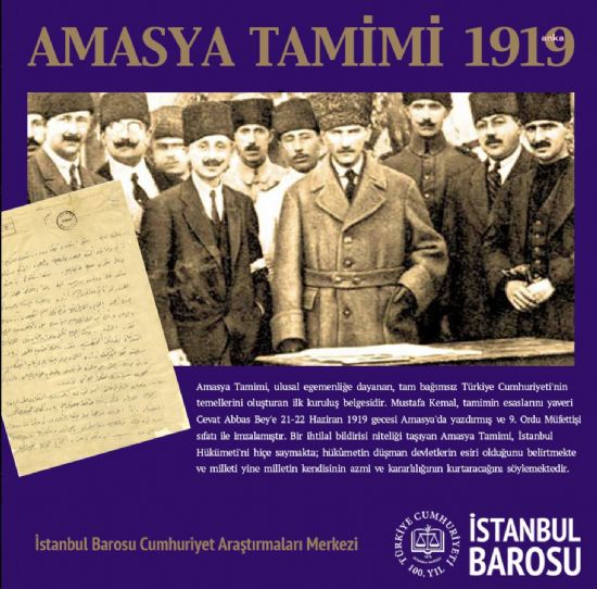 İstanbul Barosu, Amasya Genelgesi`nin 105. yıl dönümünü "İşgal edilen ülkenin özgür yaşamak isteyen halkının başkaldırısını dünyaya ilan edişinin 105. yıldönümü...