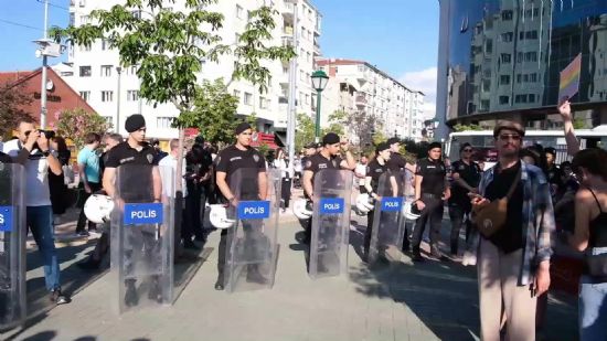 Eskişehir`de Onur Haftası nedeniyle Ulus Anıtı önünde toplanarak yürüyüş yapmak isteyen gruba emniyet güçleri müdahale etti. Ellerindeki pankartlarla slogan ata...