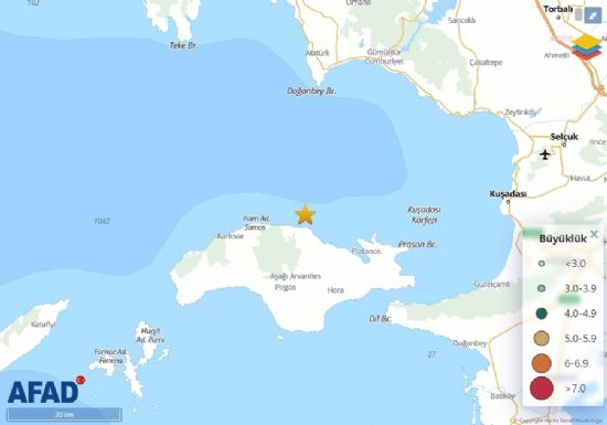 AFAD`dan yapılan açıklamaya göre, Ege Denizi`nde Seferihisar açıklarında saat 11.02`de, derinliği 6.97 kilometre olarak ölçülen deprem meydana geldi. Deprem, İz...