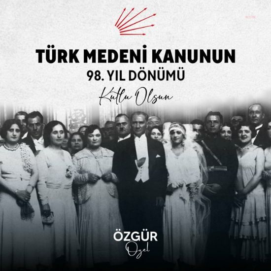 ÖZGÜR ÖZEL: "KADIN ERKEK EŞİTLİĞİ KONUSUNDA ÇAĞININ ÇOK ÖTESİNDE ADIMLAR ATILABİLMESİNE OLANAK SAĞLAMIŞ MEDENİ KANUN`UN KABULÜNÜN 98`İNCİ YIL DÖNÜMÜNÜ KUTLUYORUM"