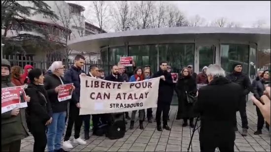 STRASBOURG DEMOKRASİ PLATFORMU`NDAN AİHM ÖNÜNDE CAN ATALAY PROTESTOSU... "YARGIYI KULLANARAK HUKUK DÜZENİNİ ALAŞAĞI ETMENİZE GEÇİT VERMEYECEĞİZ"