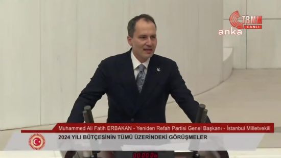 Yeniden Refah Partisi Genel Başkanı Fatih Erbakan, TBMM Genel Kurulu`nda 2024 bütçesi görüşmelerinde; "Verginin değil, gelirin tabana yayılması gereklidir, üret...