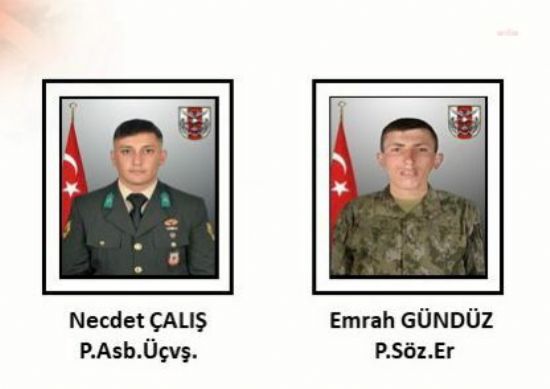 MSB: PİYADE ASTSUBAY ÜSTÇAVUŞ NECDET ÇALIŞ VE PİYADE SÖZLEŞMELİ ER EMRAH GÜNDÜZ ŞEHİT OLDU