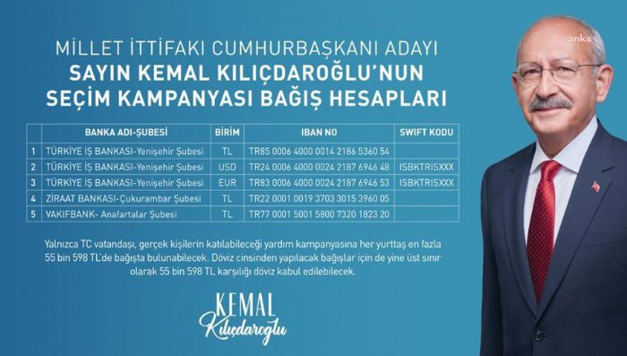 Gelecek Partisi Genel Başkanı Ahmet Davutoğlu, Millet İttifakı Cumhurbaşkanı Adayı ve CHP Genel Başkanı Kemal Kılıçdaroğlu`nun kampanyasına maddi destekte bulun...