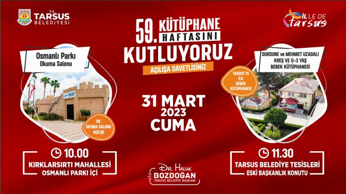 Tarsus Belediyesi, okuma kültürünün yaygınlaştırılması amacıyla düzenlenen ‘59. Kütüphane Haftası` etkinlikleri kapsamında kente kazandırdığı okuma salonu, kreş...
