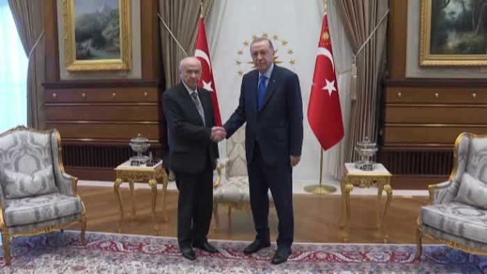 ERDOĞAN, BAHÇELİ İLE CUMHURBAŞKANLIĞI`NDA BİR ARAYA GELDİ