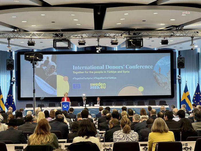 Avrupa Komisyonu Başkanı Ursula von der Leyen, Kahramanmaraş merkezli depremler nedeniyle Türkiye ve Suriye`ye yardım için Brüksel`de düzenlenen Uluslararası Do...