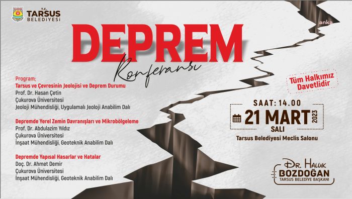Tarsus Belediyesi, alanında uzman isimlerin katılımıyla ‘deprem` konulu bilgilendirme toplantısı düzenleyecek. ...