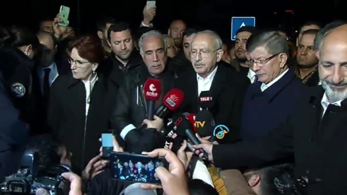 CHP Genel Başkanı ve Millet İttifakı Cumhurbaşkanı Adayı Kemal Kılıçdaroğlu, İYİ Parti Genel Başkanı Meral Akşener ve Gelecek Partisi Genel Başkanı Ahmet Davuto...