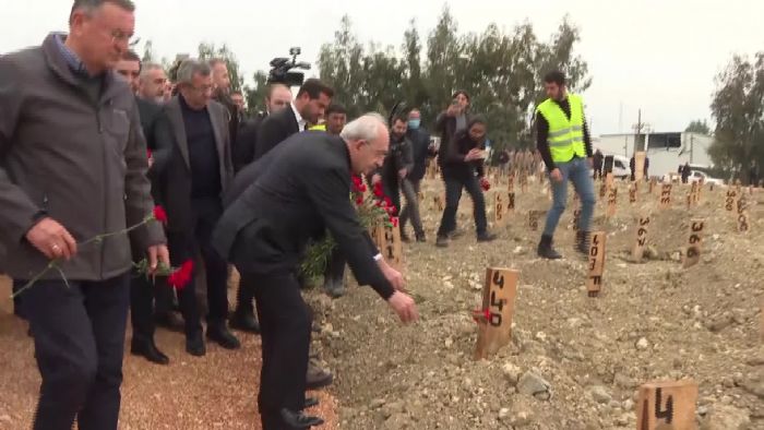 CUMHURBAŞKANI ADAYI KILIÇDAROĞLU, HATAY`DA; NARLICA DEPREMZEDE MEZARLIĞI`NI ZİYARET ETTİ