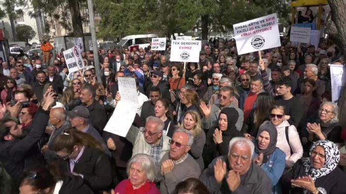 İZMİRLİ DEPREMZEDELERDEN EMSAL ARTIŞINA VERİLEN YÜRÜTMEYİ DURDURMA KARARINA KEFENLİ ÇADIRLI PROTESTO