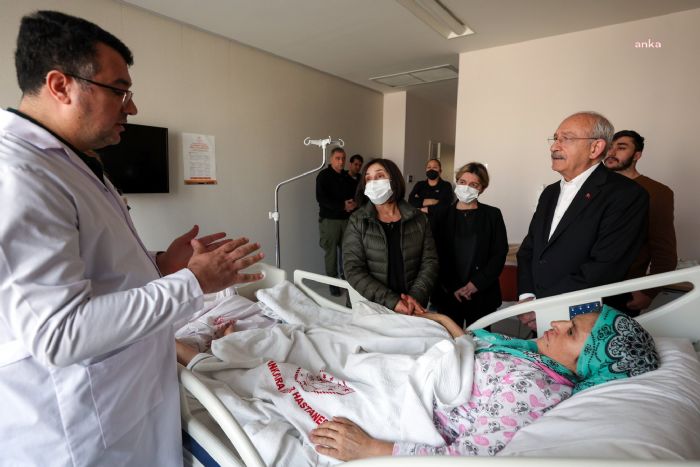 KILIÇDAROĞLU DEPREMDE YARALANAN YURTTAŞLARI, HASTANEDE ZİYARET ETTİ: “BİRLİKTE BU ZOR GÜNLERİ AŞARAK YIKILAN KENTLERİMİZİ OMUZ OMUZA AYAĞA KALDIRACAĞIZ”